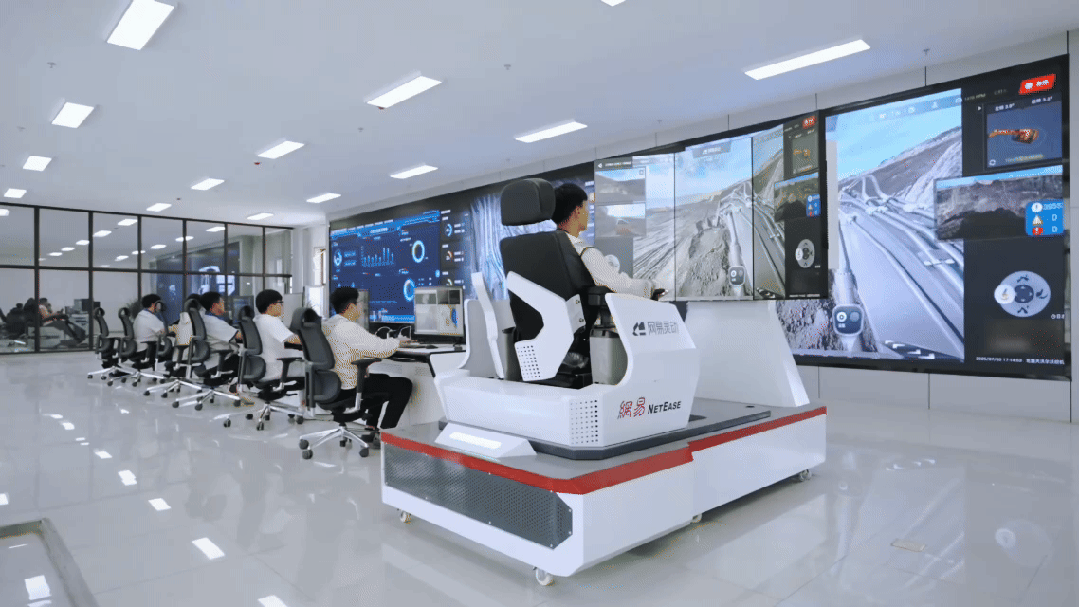 网易灵动挖掘机器人打破了传统作业受环境限制的瓶颈。无论矿山施工现场是高温酷暑,还是粉尘弥漫,任务管理员无需再置身危险的矿山施工环境。在舒适的办公室内,任务管理员借助远程操控系统,就能实现24小时不间断开采作业。这不仅可以改善施工人员的工作条件,也可以加快工程施工进度,为矿山运营创造更高的效益。在一人多机“牧羊人”模式下,任务管理员能够同时管控同一作业场景中的多台挖掘机器人,生产效率可提升90%~120%。